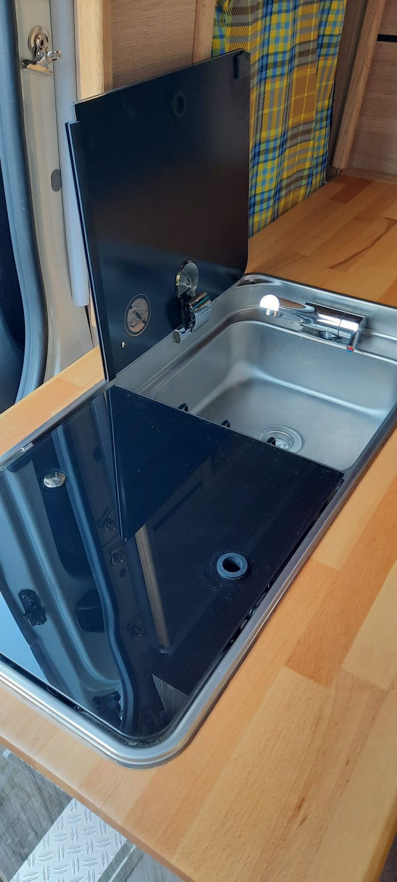 - Separates Spülbecken mit Kalt- und permanent Warmwasseranlage mit Wasserhahn