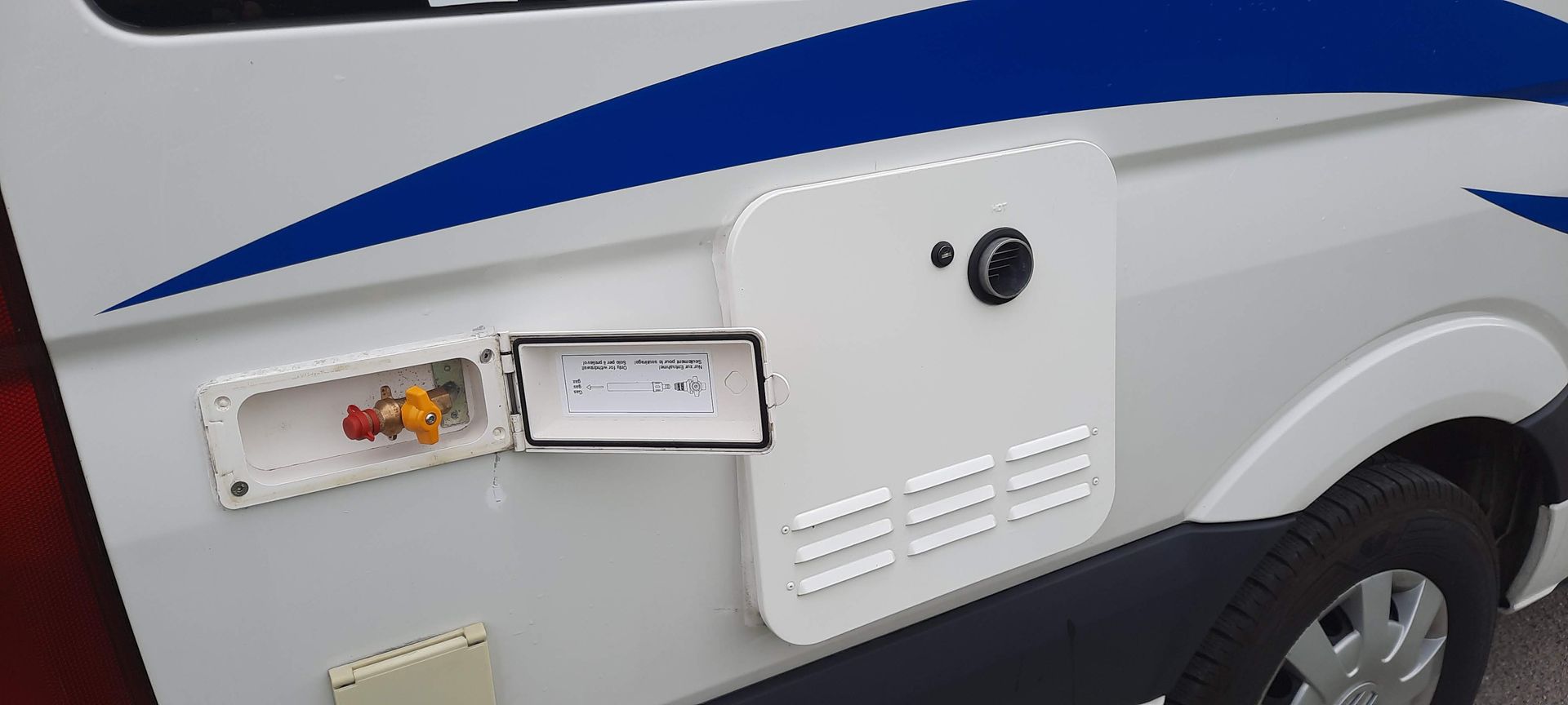 - Gasflasche 5 kg unterhalb der Küchenzeile